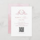 Elegante cartão de resposta de casamento online com um código QR e um monograma desenhado à mão requintado, mostrando as iniciais do casal em caligrafia. Atraente verso em tons de flor de pêssego em lavagem aquarela. Parte de nossa coleção "Casamento Botânico Monograma Flor de Pêssego Aquarela" com uma variedade de produtos coordenados.