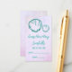 Chá de bebê com conchas azuis turquesa e fundo de aquarela roxa lavanda
