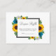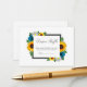 O design apresenta girassóis elegantes, rosas e margaridas com uma paleta de cores amarelo-ouro, azul-turquesa e branco. O design também apresenta uma moldura cinza carvão. Você pode alterar a cor do fundo da frente e do verso para a cor de sua escolha ou deixar ambos em branco.