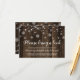 Cartão de pedido de livro para chã de bebê com tema de inverno rústico. Este design moderno apresenta luzes de corda e flocos de neve em um fundo de madeira escura.