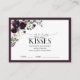 Jogo moderno e elegante para chá de panela "adivinhe quantos beijos" apresentando um buquê floral de rosas suaves em tons de roxo ameixa em aquarela, com folhas botânicas de eucalipto verde exuberante, e bordeado em roxo ameixa. Personalize os detalhes do seu casamento em preto, acentuados com bela caligrafia moderna à mão. Parte de uma suíte coordenada. Veja a coleção completa aqui: https://www.zazzle.com.au/collections/plum_purple_watercolor_floral_bridal_shower-119250449992466290 Entre em contato com o designer para produtos correspondentes. Copyright Anastasia Surridge para Elegant Invites, todos os direitos reservados.