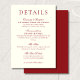 Cartão De Informações Classic Burgundy Red Minimalist Wedding Details