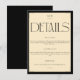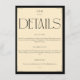 Keep your guests informed with this minimalist wedding details enclosure card. The design features the word 'DETAILS' in a striking serif font against a chic cream background, framed by a subtle black border. This card is perfect for conveying important information about your reception and accommodation arrangements. Its clean and elegant aesthetic complements any wedding theme, ensuring your guests receive all the practical details they need for your celebration in a sophisticated manner.