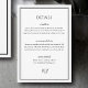 Cartão De Informações Classic Old Money Black and White Wedding Details