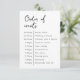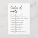 Clássica ordem de casamento elegante do cartão de cerimônia de eventos que você pode adicionar à sua suíte de casamento ou dar à entrada de seus hóspedes para saber a ordem dos eventos. Este design possui até 10 slots, mas você pode personalizá-los com o máximo que precisar clicando no botão para editar o design.