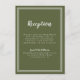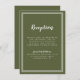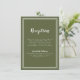 Cartão de Recepção de Recepção de Casamento Simples, Mínimo e elegante apresenta um design contemporâneo com uma dupla borda de quadros em branco nítido sobre um fundo verde-oliva de tendência. A formulação clássica proporciona sofisticação eterno, mas moderna. Personalize a design de casamento com seus detalhes em letras brancas e roteiro. A parte traseira da placa corresponde em verde estável.
