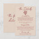 Simple and stylish deep red and cream beige floral wedding guest info details. With a cream background and deep red text layout. And burgundy hand drawn floral bouquet. All the info are customizable as website, transportation, and accommodation. Grab it along with other products from this classy handmade retro wedding suite.