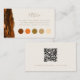 A borda esquerda deste elegante cartão de cercado de roupa de casamento apresenta uma borda agitada de cor laranja queimada, aparada com falso brilho dourado. A palavra "Attyre" aparece em um script de escrita manuscrita dourada, com sua solicitação de código de vestimenta em uma fonte em cores douradas em um fundo de marfim. Personalize facilmente os círculos de cinco cores, escolhendo "Personalizar este Modelo > Editar usando as ferramentas do Design." Insira o URL do site de casamento para gerar um código QR na parte traseira do cartão e edite o texto com seus nomes e data de casamento.