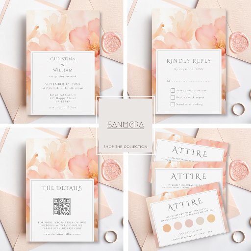 Modern Watercolor Blush Peach Floral WeddingCriado por Linda Lee