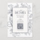 Cartão De Informações Código QR Azul Marinho com Detalhes Florais do Cas