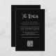 Esses cartões de informação para convidados de casamento, simples e elegantes, pretos e escuros, apresentam uma tipografia branca caprichosa e ao estilo vintage. Você pode usar esses cartões para direções, informações de recepção ou transporte, informações de hotel ou acomodações e quaisquer outros detalhes do casamento que precise que seus convidados saibam. Também apresenta um código QR escaneável.