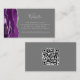 A borda esquerda deste elegante e moderno cartão de cerimônia de núpcias apresenta uma cor d'água púrpura e borda com falso brilho prateado. O título aparece no script de escrita manual, com texto personalizável abaixo na fonte da placa de reprodução da cinza prateada em um plano de fundo de cinza médio. O verso apresenta um código de QR personalizado que os convidados podem pesquisar para visitar seu site e RSVP on-line.