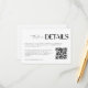 Um cartão de detalhes de casamento preto e branco clássico e mínimo, projetado com letras de script e um código QR que seus convidados podem digitalizar para acessar seu site de casamento.