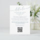 Esta simples carta de apresentação de detalhes com linha do tempo apresenta simples detalhes modernos no website do casamento, calliografia, endereço online do rsvp, informações elegantes, preto e branco, informações minimalistas elegantes e modernas, simples tipografia de classe, endereço da web, mais informações, resposta de convidado da internet, rsvp online no site, site moderno sofisticado, detalhes de convidados e informações, com posicionamento de código QR.