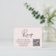 Cartão de resposta online para casamento em rosa claro elegante com "Rsvp" em uma fonte moderna e sofisticada. Crie um código QR vinculado ao site do seu casamento para que os convidados o leiam e respondam online. O verso apresenta sua foto, nomes e data do casamento.