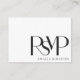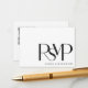 Essas placas de gabinete RSVP de 3,5 pol x 2,5 pol, elegantes e modernas e minimalistas, apresentam um simples design RSVP na frente, em letras negras, em um fundo neutro. A escolha do papel de carta determinará a cor de fundo. Personalize adicionando os nomes dos casais de casamento, o site do casamento e o código QR do site.