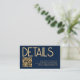 Código QR de texto moderno Dourado Azul Marinho Detalhes do Casamento pequeno anexo tornando conveniente para os seus convidados verem mais detalhes ao digitalizar o seu código QR que leva ao site do seu casamento.. Um design tipográfico simples totalmente personalizável. Personalize facilmente as palavras para o seu. O seu código QR será gerado automaticamente para atualizar o código de exemplo no design, quando você simplesmente alterar o URL de exemplo no modelo com o URL do site do seu casamento. Você também pode alterar as cores do texto e do fundo, se desejar, através da opção personalizar mais para combinar com o tema de cores do seu casamento.