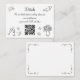 Este cartão de detalhes do casamento caprichoso é artístico e prático, apresentando ilustrações desenhadas à mão em preto, combinadas com letras em estilo manuscrito.