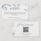 Criado para combinar com a nossa coleção de casamento "Elegant Blue Watercolor Foliage", este simples e contemporâneo cartão de cerimônia apresenta uma folhagem azul-romântica de cor-d'água e é personalizável com as informações do seu website de casamento e o endereço sobre um fundo de textura de papel rústico branco, enquanto a parte de trás do cartão é personalizável com o seu Código QR, data de casamento e nomes.