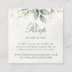 Belas cartas de resposta com código QR do site de casamento com eucalipto aquarela e folhas de ouro.