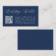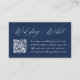 Este cartão de acompanhamento de site de casamento com QR Code apresenta uma caligrafia branca elegante em um fundo azul-marinho rico, adicionando um toque de sofisticação à papelaria do seu casamento. Personalize-o com o endereço do seu site de casamento e instruções fáceis de seguir em letras brancas em negrito, para que os convidados possam simplesmente escanear o código QR para acessar detalhes importantes e responder online. O design moderno, simples e elegante é perfeito para casamentos formais e informais, independentemente da estação. Este cartão prático e elegante garante que os convidados tenham todas as informações necessárias ao alcance dos dedos, ao mesmo tempo em que aprimora a estética geral do seu dia de casamento.