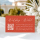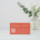 Este cartão de acompanhamento de site de casamento com QR Code combina elegância com conveniência, apresentando caligrafia branca delicada em um vibrante fundo laranja-pôr do sol de Verona. Os casais podem personalizar facilmente o cartão adicionando o endereço do site do casamento e instruções em letras brancas em negrito, permitindo que os convidados scaneiem rapidamente o código QR para acessar detalhes importantes do casamento e responder online. Com seu design moderno, simples e elegante, este cartão é a adição perfeita para casamentos formais e informais, independentemente da estação. Torne o planejamento do casamento contínuo e elegante com este design atencioso e prático.