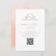 Cartão de cerimônia de casamento on-line RSVP Elegante, com um código QR e um belo monograma desenhado à mão mostrando as iniciais do casal. Atraente de volta em lavagem aquosa de cor de pêssego. Parte da nossa coleção "Peach Watercolor Botanical Monographic Wedding" com uma variedade de produtos coordenadores.