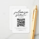Um simples fundo branco minimalista e texto preto "por favor, digitalize" RSVP de casamento com o Código QR para encorajar RSVP por telefone ou site de casamento.