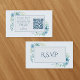 Este pequeno cartão RSVP de casamento apresenta um belo trabalho de arte floral azul de aquarela parelhado com tipografia elegante, criando um refinado elemento de casamento botânico perfeito para celebrações sofisticadas. A frente exibe um design clássico "R.S.V.P" renderizado em uma paleta de cor azul profunda clássica, enquanto a parte traseira inclui uma inserção contínua de código qr rsvp com instruções fáceis de resposta. Cercado por um sotaque de quadro floral verde macio e complementado por um esquema suave de cor pastel, este elegante cartão azul r.s.v.p. coordena-se perfeitamente com a suíte de casamento floral azul de cheio. O layout simples e limpo do design garante clareza e estilo, fazer um detalhe essencial nos detalhes do evento de casamento do jardim.