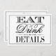 Cartões de Detalhes de Casamento Moderno Preto e Branco Coma, Beba & Seja Casado.