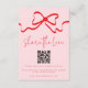 A design do cartão de estoque de compartilhamento de fotos do casamento mostra um arco vermelho em negrito sobre um fundo rosa macio. Combinado com fontes elegantes e escrita engraçada, exude uma vibração moderna, porém chique e encantadora, que cativa os receptores. Este estilo único define o tom para uma emocionante celebração à frente, encantando convidados ao receber o cartão.
