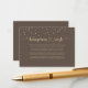 Este cartão de inclusão de desejo de lua de mel com grafia em confete dourado em marrom é perfeito para um casamento rústico. O design apresenta uma bela fonte de caligrafia dourada em um fundo marrom para embelezar o seu evento.