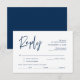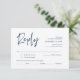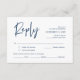 Este é o belo cartão de resposta de caligrafia de romance moderno, Confirmação de Presença (Responder) incluso, em fonte azul marinho, onde você pode editar, alterar a cor e formatar de acordo com a sua necessidade de design, com opções de refeição, assentos reservados, número de participantes e opção de pedido de música.