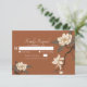 Confirme com estilo! Estes cartões de confirmação de presença de casamento apresentam uma ilustração impressionante de um ramo de magnólia vintage contra um fundo terracota quente - perfeito para definir um tom romântico e rústico para o seu grande dia. Encomende agora e faça com que os seus convidados sintam o amor!
