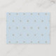 Este cartão de conselho de chá de fraldas bonito apresenta um fundo azul-bebê claro com estrelas de ouro prateado sujas e nuvens brancas costura. O verso apresenta um fundo azul bebê com padrões falsos de estrelas douradas. Personalize-o para as suas necessidades. Você pode encontrar produtos correspondentes na minha loja.