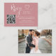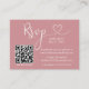 Coração de Caligrafia Moderna Cartão de RSVP de Casamento Simples Minimalista com seu Código QR. Fundo Rosa Empoeirado. Foto na parte traseira.
