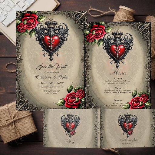 Elegante mas místico coração gótico que captura a beleza do amor no estilo gótico. Os rosas são ilustrados em detalhes do excelente, com tons suaves e folhas delicadas que acrescentam um toque animado à design