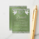 Este design romântico apresenta um elegante fundo de sábio com bordas reluzentes, um delicado coração de rolagem prateada e pombos com detalhes para mais informações na frente e código QR e marcador monográfico no verso. Também disponível com diferentes planos coloridos para as cores do tema do casamento. (O brilho é simulado no trabalho de arte). Concebido para coordenar a Coleção de Casamentos "Dois Tornar-se-ão Um - Corações, Doves & Glitter". Para alterar os detalhes, clique em "Personalizar". Para mover o texto ou alterar o tamanho, a fonte ou a cor do texto, clique em "Clique para personalizar mais"