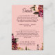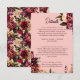 Compartilhe tudo o que seus convidados precisam saber com este cartão de detalhes de casamento Romântico de Crisântemo. Compondo ricas flores de outono em burgundy, rosa e pêssego, este elegante inserto é perfeito para delinear acomodações, direções, código de vestimenta, horários de transporte ou eventos do fim de semana do casamento. Personalize com suas próprias palavras para se adequar à sua celebração. Ideal para casamentos de outono, cerimônias com tema floral ou eventos de destino. Projetado para combinar perfeitamente com a suite completa de Crisântemo Romântico para um conjunto de convites coordenados e sofisticados.