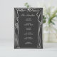Desenho de cronograma de casamento em carvão com uma ilustração desenhada à mão de uma cortina e tipografia inspirada em vintage.