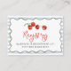 Torne a oferta simples e doce com esta charmosa placa de registro de chá de fraldas com design de tomate de cereja e um roteiro vermelho lúdico. A parte frontal destaca o local do registro com um fundo listrado azul suave e um quadro redimensionado verde branco. No verso, os convidados encontrarão um código de QR digitalizável que se liga diretamente ao registro, fazer que seja fácil acessar todos os elementos essenciais do bebê em um único lugar. Perfeito para chás de fraldas de verão, jardim ou agricultores com temas de mercado, esta inserção neutra em termos de gênero adiciona um novo toque prático ao seu conjunto de convites.