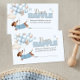 Diaper Raffle hand-out or enclosure card with adorable dachshund theme for a boy baby shower. The diaper raffle card is Illustrated with a cute dachshund puppy wearing a blue sweater, floating amongst a bunch of soft blue and beige balloons. Playful cloud and stars add to the whimsical theme. Sure to bring smiles whilst evoking a gentle, joyful vibe.
