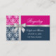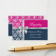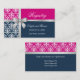Cartão De Informações Damask Faux Silver Ribbon Marinho Blue Fuchsia