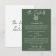 Simple and stylish dark moss green floral wedding guest info details. With a plain green background and white text layout. And hand drawn floral bouquet. All the info are customizable as website, transportation, and accommodation. Grab it along with other products from this classy handmade retro wedding suite.