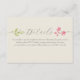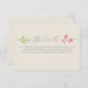 Este cartão de detalhes do casamento da flor silvestre primavera é uma encantadora inserção de cerâmica, perfeita para compartilhar informações extras com seus convidados. Apresentando florais de aquarelas em tons pastéis macios e um roteiro elegante de caligrafia, ele coordena-se perfeitamente com o conjunto de flores silvestres do cheio. Personalize com seu site de casamento, site de RSVP, acomodações, informações de recepção ou instruções. Uma maneira delicada e prática de manter seus convidados informados enquanto mantém sua estética boho.
