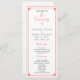 Um cartão de detalhes da cerimônia de casamento minimalista de estrutura de coral que você pode fazer usando a opção "personalizar esta modelo" para inserir suas informações da cerimônia de casamento. Escrita colorida de coral e tipografia de cinza em fundo branco. Script e texto em um fundo branco limpo e simples no verso.