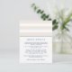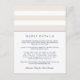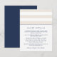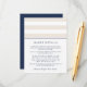 Projetado para coordenar com nossas coleções de convites para casamento da Metro Stripe de marinho e creme, este cartão chic simples e pré-disquete contém marinho azul com largo bege de linho e listras brancas e uma fina banda de marinho. Substitua o texto da amostra pelos detalhes chave da sua celebração do casamento. Que informações incluir em um convite de casamento? Considere detalhes como acomodações de hotel, códigos de grupo, transporte, informações de recepção de boas-vindas e sua URL do site de casamento.
