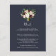 Projetado para coordenar com a nossa coleção de casamento Blush Romance e Midnight Romance, este elegante cartão de informação floral de hóspedes apresenta um buquê de burgundy marsala, flores cor-de-rosa e marfim, em cima dos seus principais detalhes de casamento, como alojamentos de hotel, informações de recepção de boas-vindas, site e muito mais. Adicione seu texto personalizado usando os campos fornecidos e use a função Personalizar para ajustar fontes, tamanhos e espaçamento.