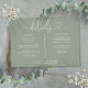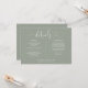 Um cartão de informações de detalhes de casamento em script de coração verde sage elegante personalizado com seus detalhes especiais em tipografia estilosa. Projetado por Thisisnotme©