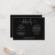Um cartão de informações de detalhes do casamento com script de coração preto e branco personalizado com seus detalhes especiais em tipografia elegante. Criado por Thisisnotme©